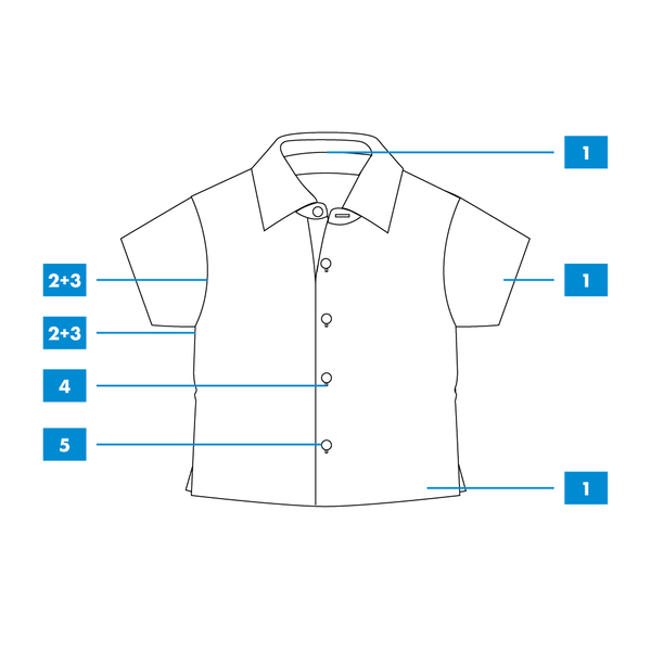 | 6 | Attach button | 107 single thread chainstitch | Saba | 120 | 24 | Saba | 120 | 24 | 65 | 9 | |||||||||||