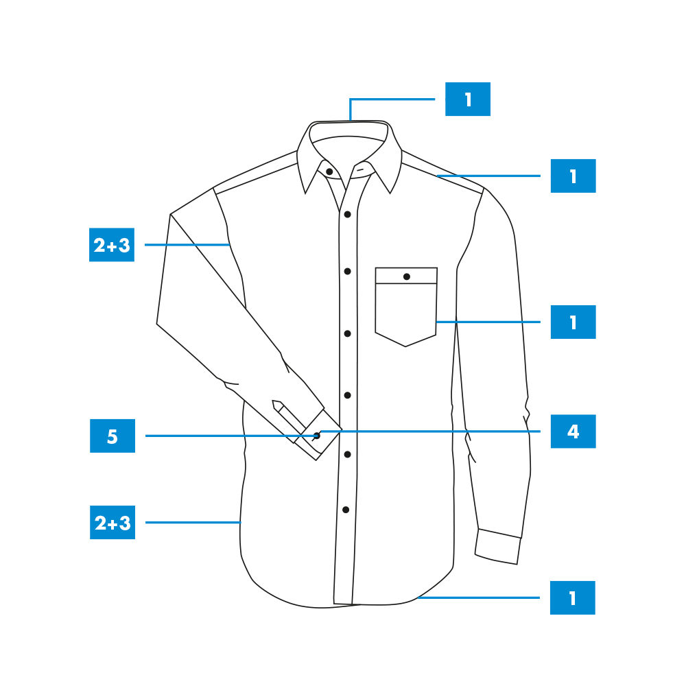 | 5 | Attach button | 107 single thread chainstitch | Saba | 80 | 40 | Saba | 80 | 40 | 80 | 12 | |||||||||||