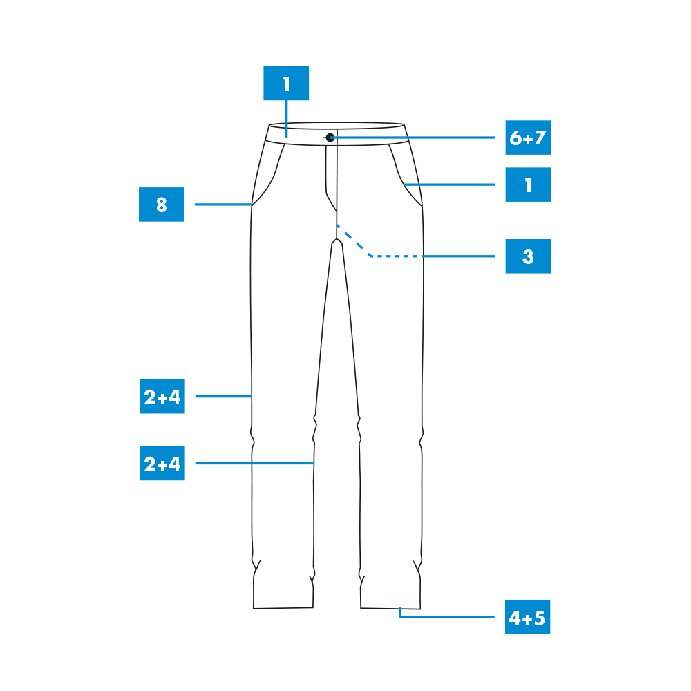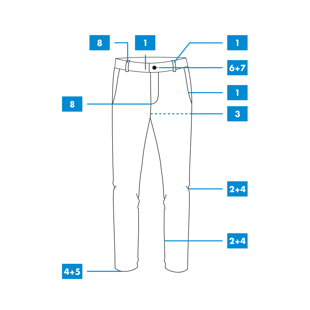 | 8 | Bar tack | 304 lockstitch | Saba | 80 | 40 | Saba | 80 | 40 | 80 | 12 | |||||||||||