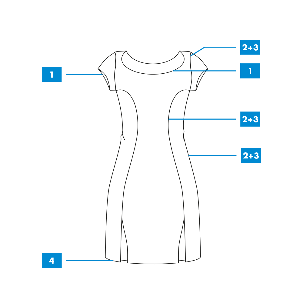 | 1 | Closing and serging seams | 514 4-thread overlock stitch | Sabasoft | 120 | 18 | Sabasoft | 120 | 18 | 70 | 10 | |||||||||||