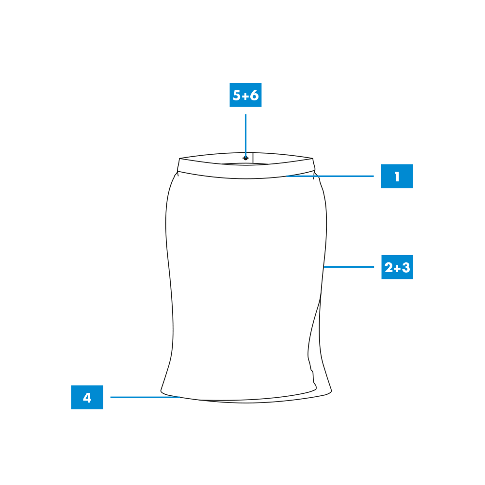 As an universal sewing thread for skirts we recommend Saba 120 in combination with Sabatex 120 for serging and Serafil fine 180 for blindstitch seams.