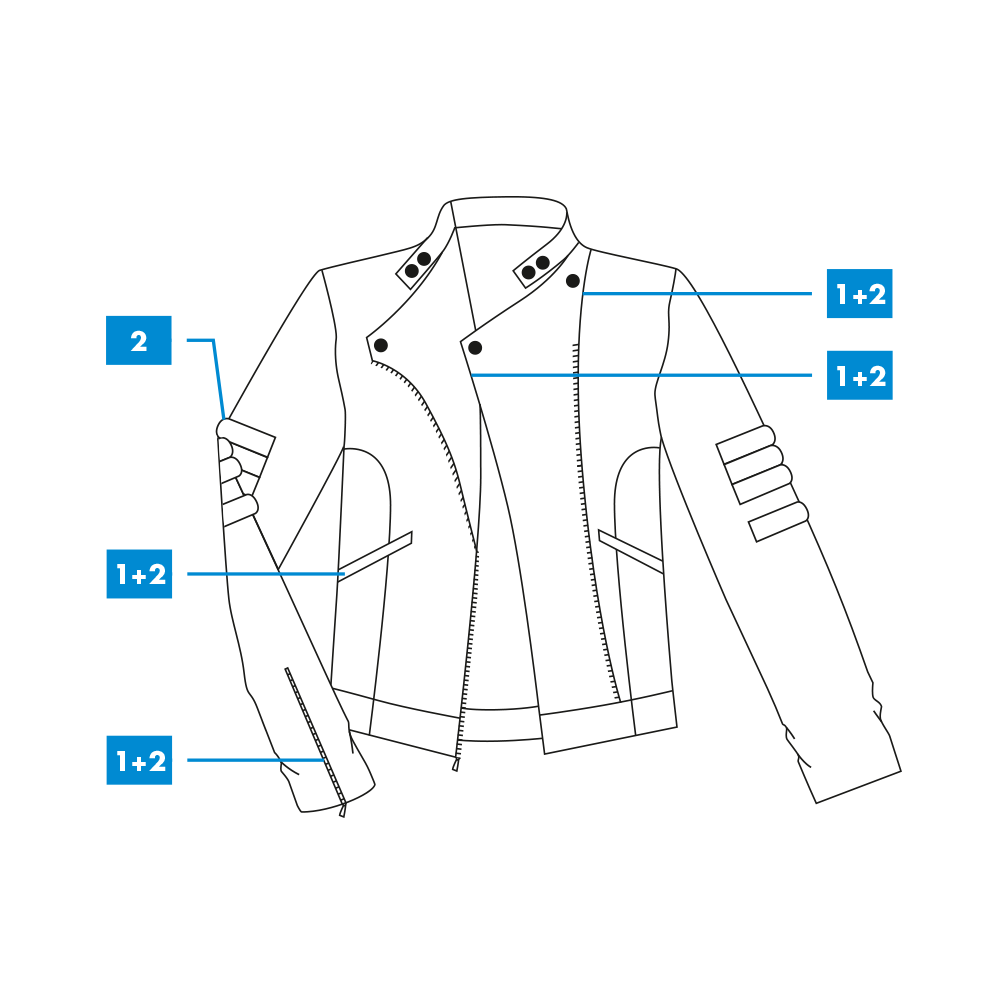 As an universal sewing thread for jackets and coats we recommend Saba 120 in combination with Sabatex 120 for serging.