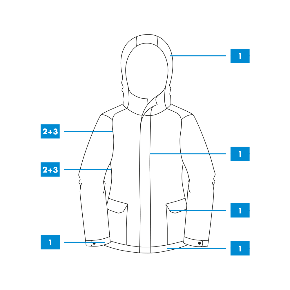 | 1 | Closing and topstitch seams | 301 lockstitch | Serafil | 80 | 30 | Serafil | 80 | 30 | 70 | 10 | |||||||||||