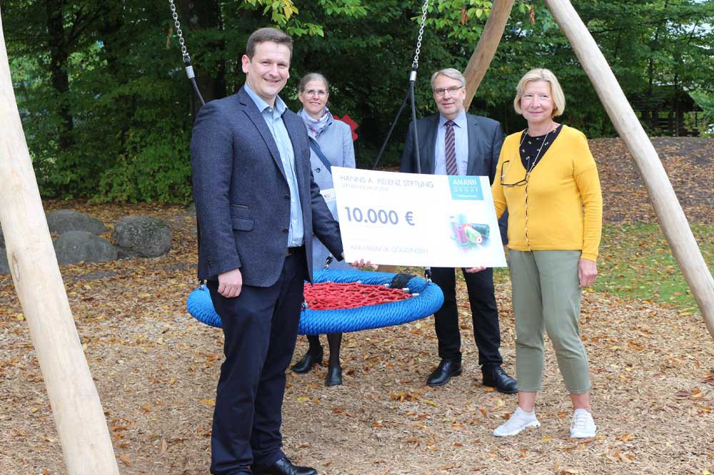 Фондация Hanns A. Pielenz подкрепи дневния център Habakuk с дарение от 10 000 евро, които ще бъдат използвани за изграждането на градина за приключения в природата. Символичното предаване на чека за дарения от Daniel Oster, управител на завода на производствената база на AMANN в Augsburg-Göggingen, на ръководството на дневния център се състоя през октомври 2021 г.