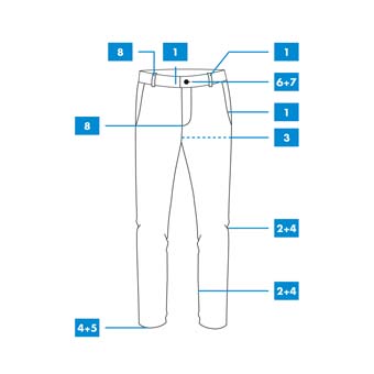 Unsere Nähfadenempfehlung für die Hosenverarbeitung ist Saba 120 in Kombination mit Sabatex 120 in der Versäuberung.