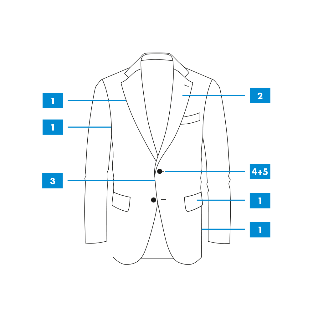 Farmerkabátokhoz a Saba 80 általános varrócérnát javasoljuk tűzőöltésekhez, a Saba 30 varrócérnával kombinálva a díszítő- és fedővarratokhoz. Szegővarratokhoz a klasszikus Saba 120 cérna javasolt.